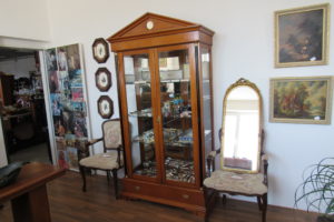 š-110,5cm, v-210,5cm, h-49cm, zrcadlová záda, skleněné police, osobní převzetí, cena 19000,-Kč